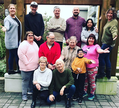 Pictured with members of the BC Self-Advocate Leadership Network, Arlene and Nolda (first row, left and right) emphasize the importance of supporting self-advocates to lead in their own ways.