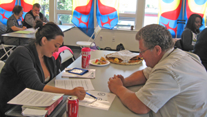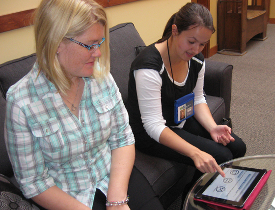 include Me! surveyors Amanda Marsh and Kayla Malicki practice completing the quality of life survey as part of their training.